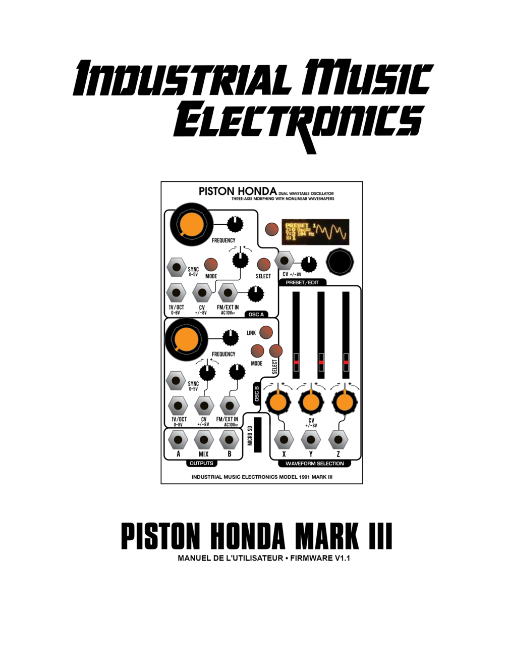 Industrial Music Electronics - Piston Honda MKIII Manuel de l'utilisateur -Traduction fidèle du manuel de l'utilisateur de Piston Honda MKIII avec sommaire/raccourcis pour faciliter la lecture.